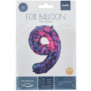 Folieballon Cijfer 9 Paint Splash Neon (86cm)