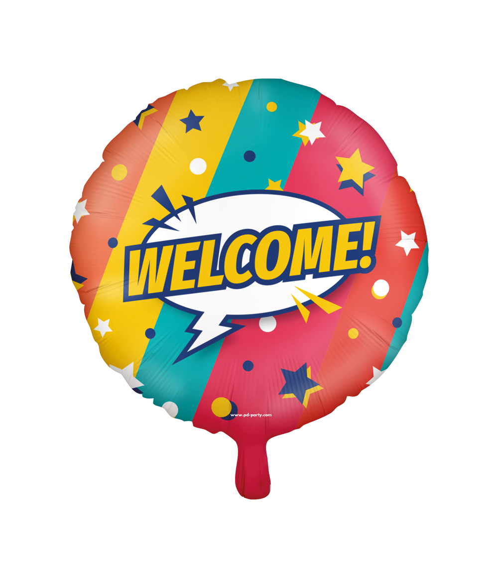 - Folieballon 'Welcome' Cartoon Rainbow - Doorsnede: ± 46cm - Inhoud: Leeg (standaard) - Geschikt voor: Helium en lucht - Zweeftijd (helium): 1 tot 2 weken - Materiaal: Folie