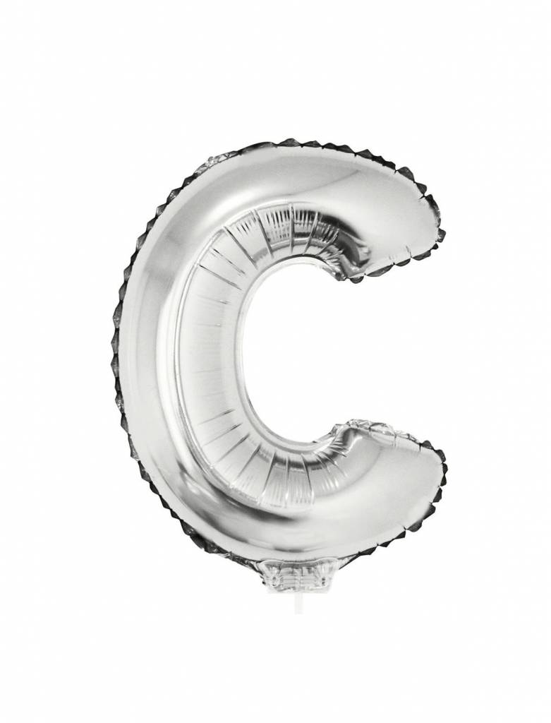 Folieballon zilver letter 'C' met rietjeInhoud: leeg geleverd met rietjeHoogte: 41cmGeschikt voor: luchtKleur: zilverMateriaal: folie