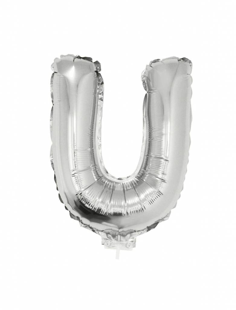 Folieballon zilver letter 'U' met rietjeInhoud: leeg geleverd met rietjeHoogte: 41cmGeschikt voor: luchtKleur: zilverMateriaal: folie