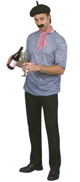 Franse man verkleedsetBestaande uit: shirt, baret, sjaaltje en snorMaat one size