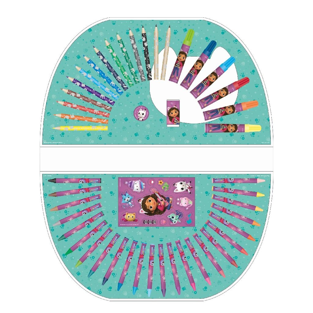 - Gabby's Dollhouse Kleurkoffer - Geschikt voor: Kinderen vanaf 3 jaar - Afmeting van de koffer: 38 x 22 x 4 cm - Bestaande uit: 12 mini kleurpotloden, 6 stiften, 24 krijtjes, een stukje gum, 2 mini potloden, een puntenslijper, 1 stickervel en 4 posters