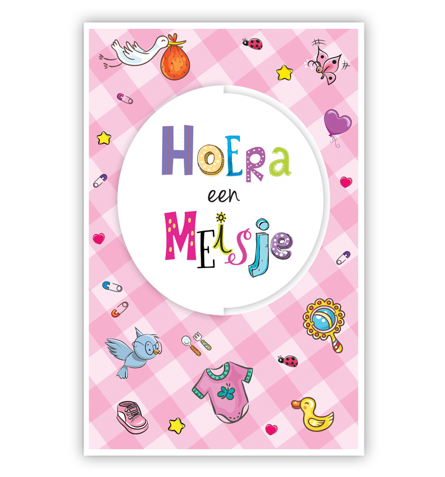- Geboortekaart Hoera Een Meisje Roze Gestanst- Afmetingen: 115 x 175mm - Inclusief: Enveloppe (Roze)- Binnenkant: Bedrukt- Materiaal: Karton