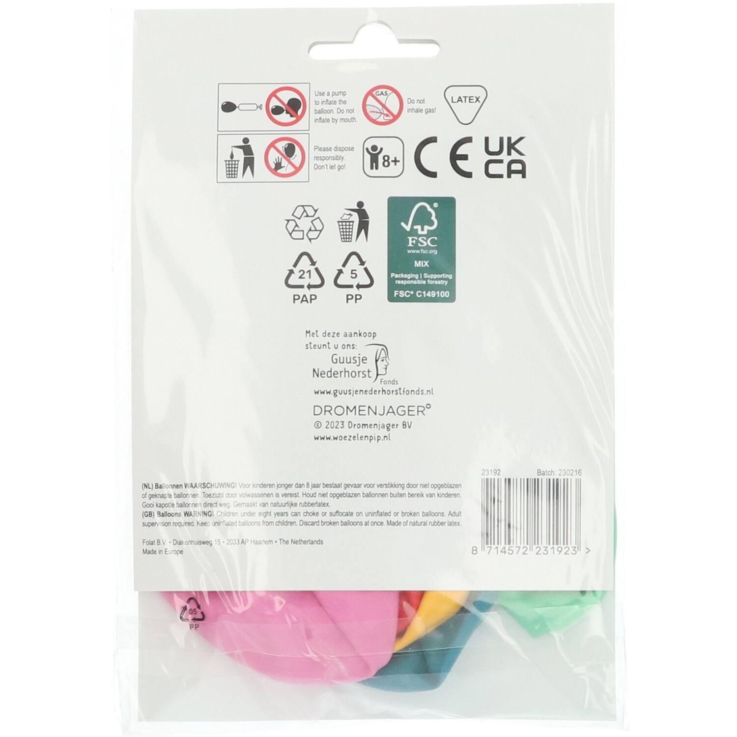 - Bestaande uit: 6 ballonnen in 6 verschillende kleuren