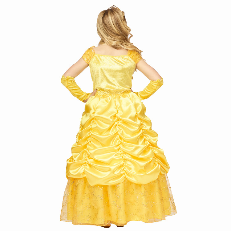 Deze prachtige gele prinsessenjurk voor kinderen is een droom voor elke kleine meid! Met zijn stralende gele stof straalt de jurk vrolijkheid uit, terwijl de delicate gouden afwerkingen een vleugje magie toevoegen. De jurk heeft een elegante, klassieke uitstraling die perfect is voor feesten, verkleedpartijtjes of gewoon een speeldag thuis. Laat je kind stralen in deze betoverende jurk voorzien van mouwstukken en geniet van het spelenderwijs creëren van onvergetelijke herinneringen!