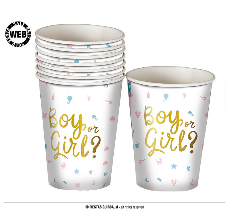 - Gender Reveal Bekers Boy Or Girl- Aantal: 6 stuks per verpakking- Inhoud: 240 ml - Materiaal: Karton
