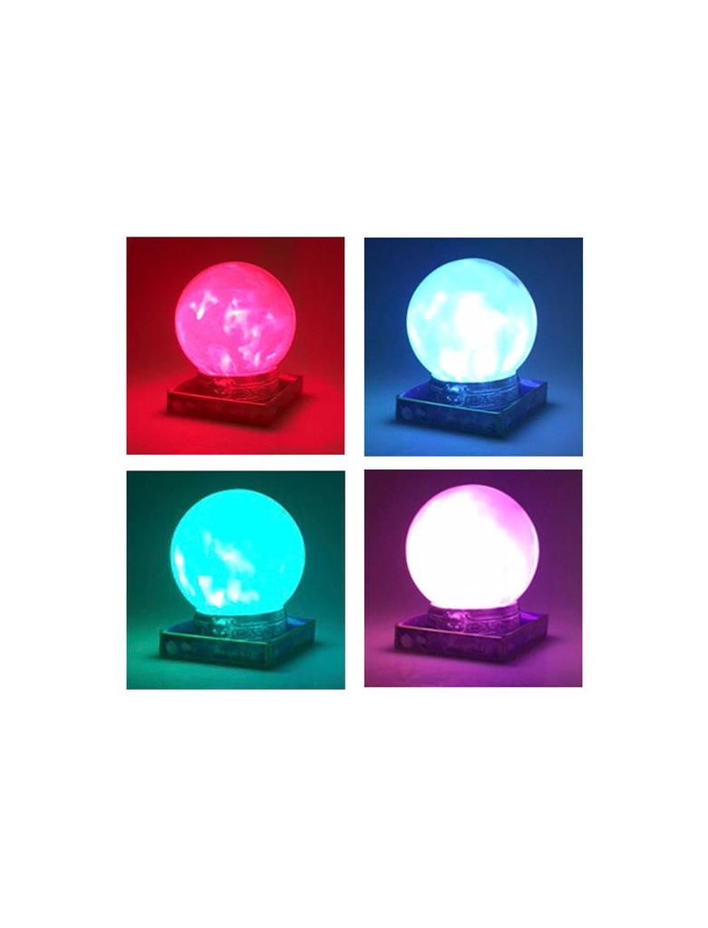 - Glazen Bol Met Licht En Geluid- Kenmerken: beweging en licht (kan oplichten in vier verschillende kleuren (roze, paars, groen en blauw)- Afmetingen: 15 cm x 15 cm x 24 cm- Batterij type: AA (niet inbegrepen)