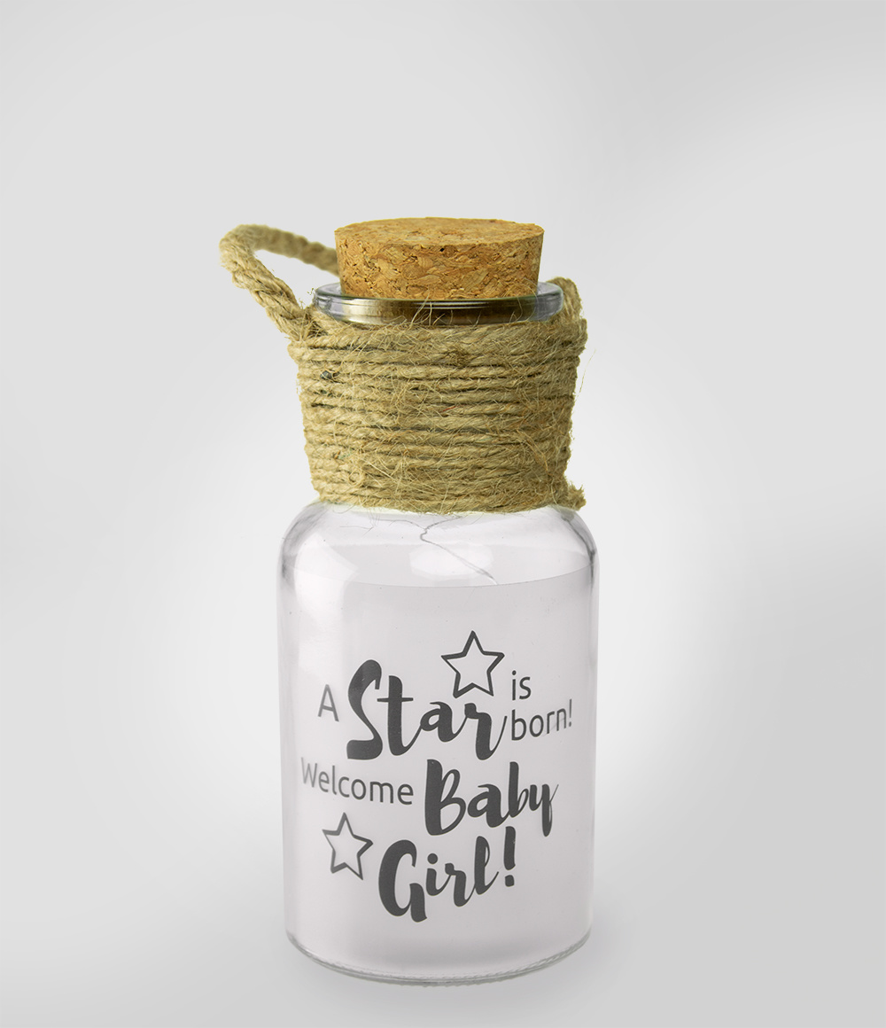 - Hoogte ± 15 cm- Doorsnee ± 6,5 cm- Voorzien van drukknop- Inclusief 3V lithium batterij- Hals voorzien van jutte met handvat
