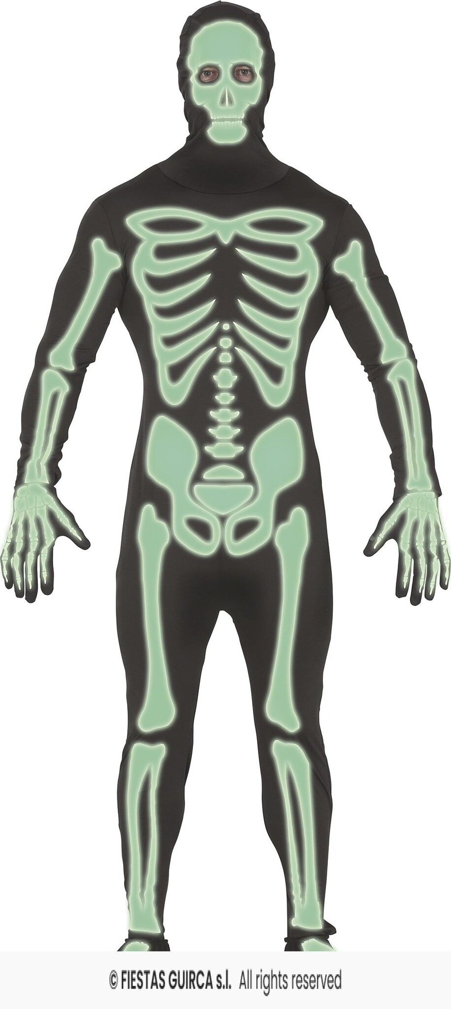 Stap in de schijnwerpers met dit Glow-in-the-Dark Skeleton Morphsuit van Feestbazaar! Perfect voor Halloween, themafeesten of elke gelegenheid waar je op wil vallen. Het strakzittende, elastische pak bedekt je van top tot teen, met een indrukwekkend skeletontwerp dat oplicht in het donker. Je bent volledig onherkenbaar, maar dankzij het ademende materiaal kun je moeiteloos zien, ademen en bewegen. Dit unieke kostuum garandeert dat je zowel overdag als 's nachts de aandacht trekt!
