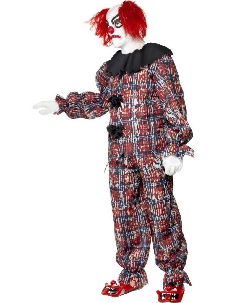 Griezel Clown kostuum bestaande uit: Shirt, Broek, Schoenen, Handschoenen en Masker