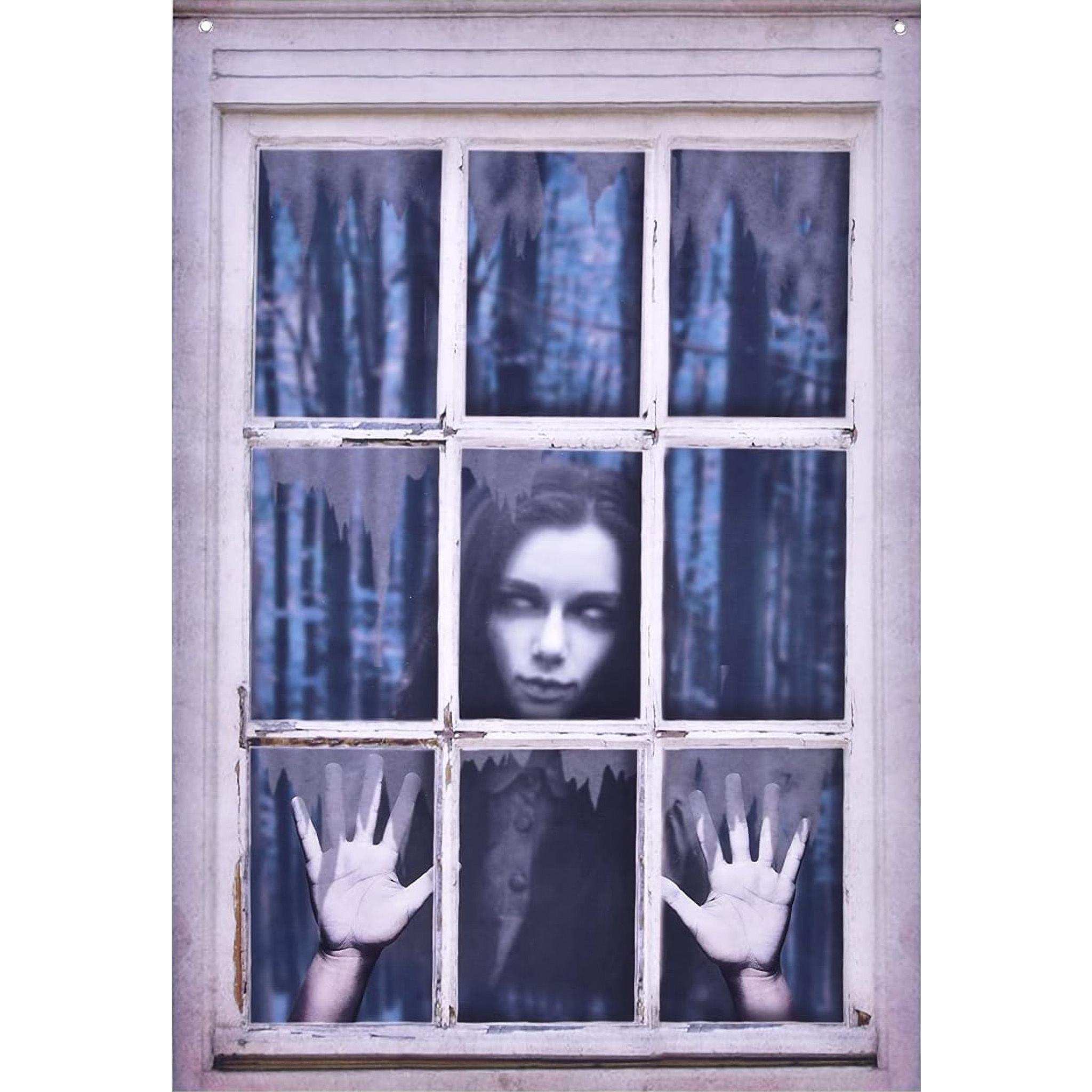 Zorg voor angstaanjagende blikken met de Griezelige Raamdecoratie Bezeten Vrouw van Feestbazaar! Deze levensechte decoratie van 80x120 cm maakt van elk raam een griezelige scène. De afbeelding van een bezeten vrouw zorgt voor een huiveringwekkend effect. Perfect voor Halloween, spookhuizen of themafeesten.
