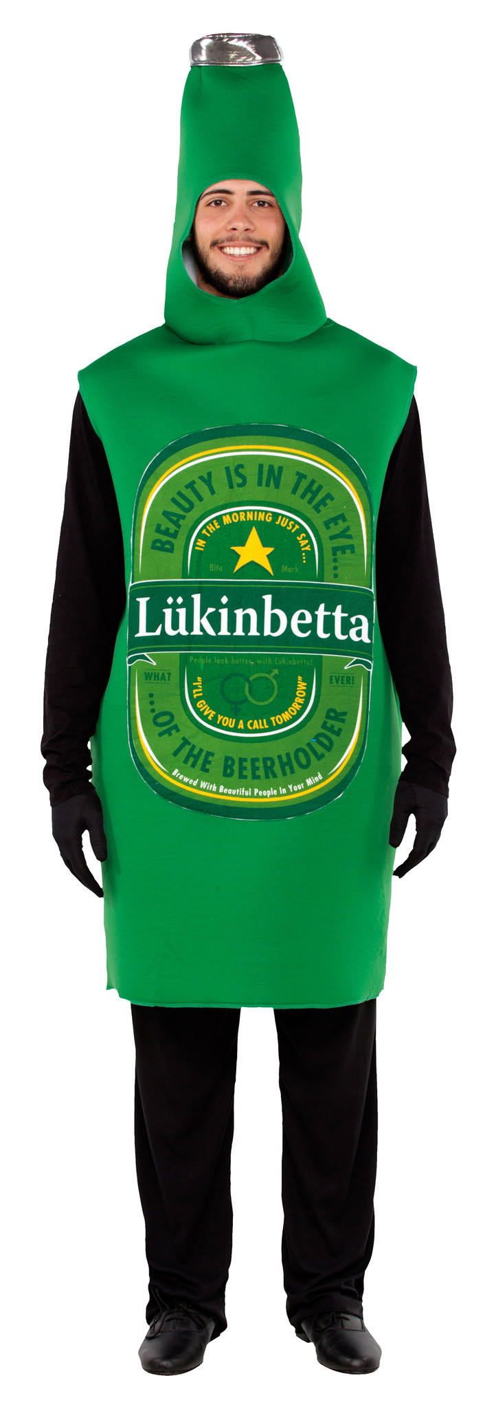 - Groene Bierfles Kostuum Lukinbetta- Maat M/L (one size)- Bestaat uit: Jumpsuit