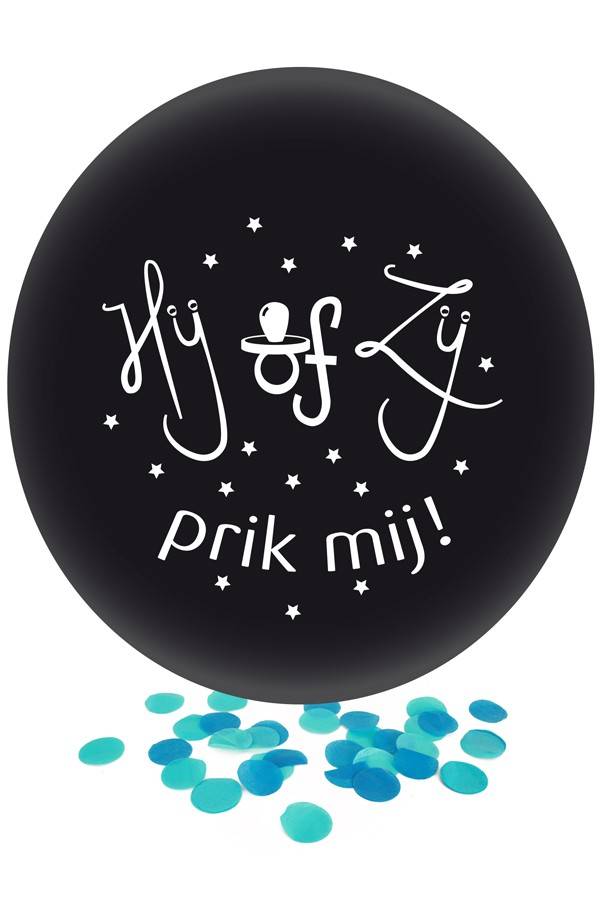 - Grote Ballon Gender Reveal Hij of Zij Prik Mij met blauwe confetti