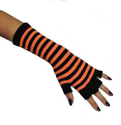 - Handschoenen Neon gestreept Oranje Vingerloos- Maat: One size