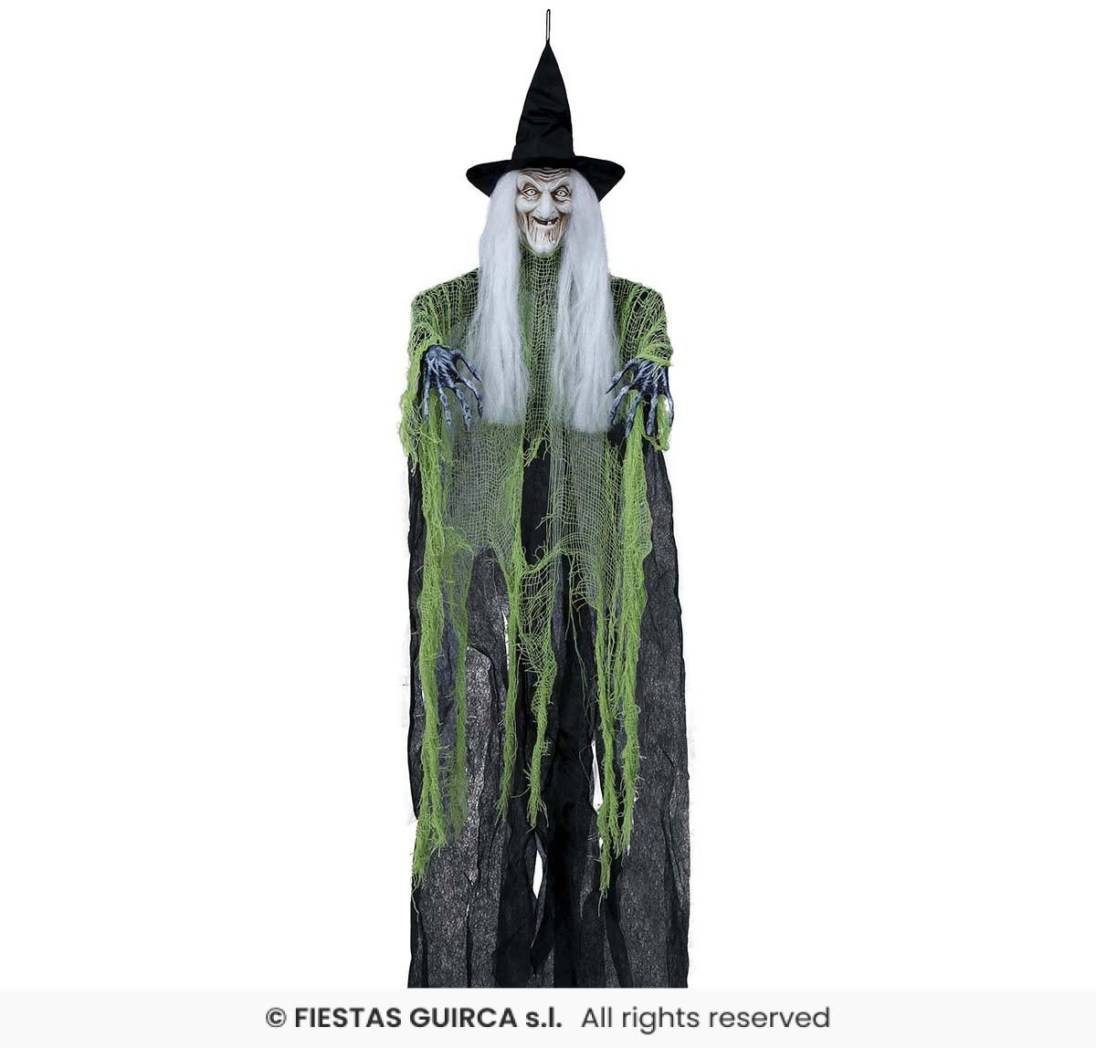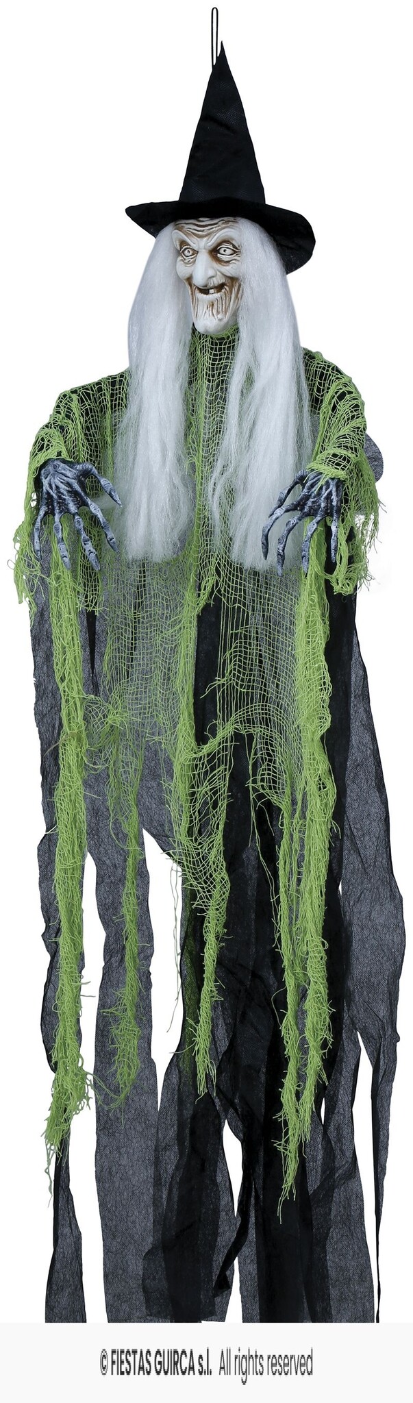 Breng een griezelige sfeer tijdens Halloween met onze Hangende Halloween Heks van 100 cm! Deze prachtig vervaardigde heksenfiguur is perfect om te hangen. Met haar lange, golvende gewaden, sinistere glimlach en gelaatsuitdrukking voegt ze een vleugje magie en mysterie toe aan elk decor. De heks is uitgerust met stevige ophangpunten zodat je optimaal kunt genieten van de Halloween-vieringen. Of je nu een Halloween-feest geeft of gewoon je huis wilt verfraaien, deze heks is de ideale keuze voor een griezelige uitstraling!