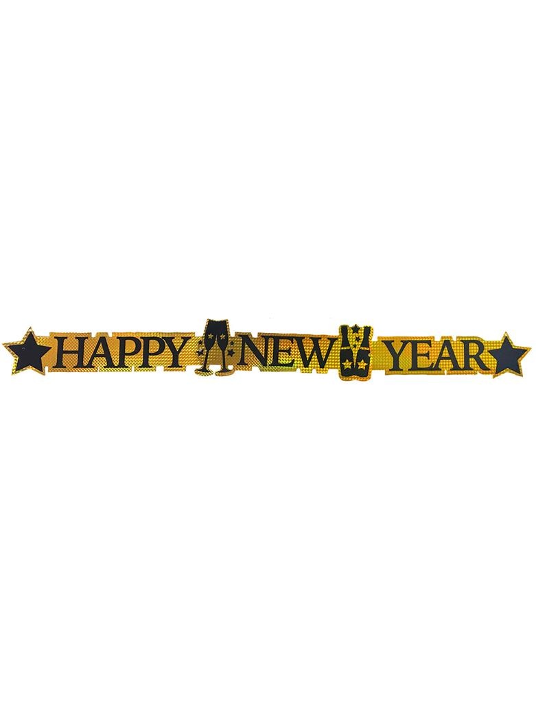 - Happy New Year Banner Goud- Lengte: 113cm lang- Materiaal: Karton- Enkelzijdig bedrukt - Touwtjes aan beide kanten om ergens aan vast te knopen