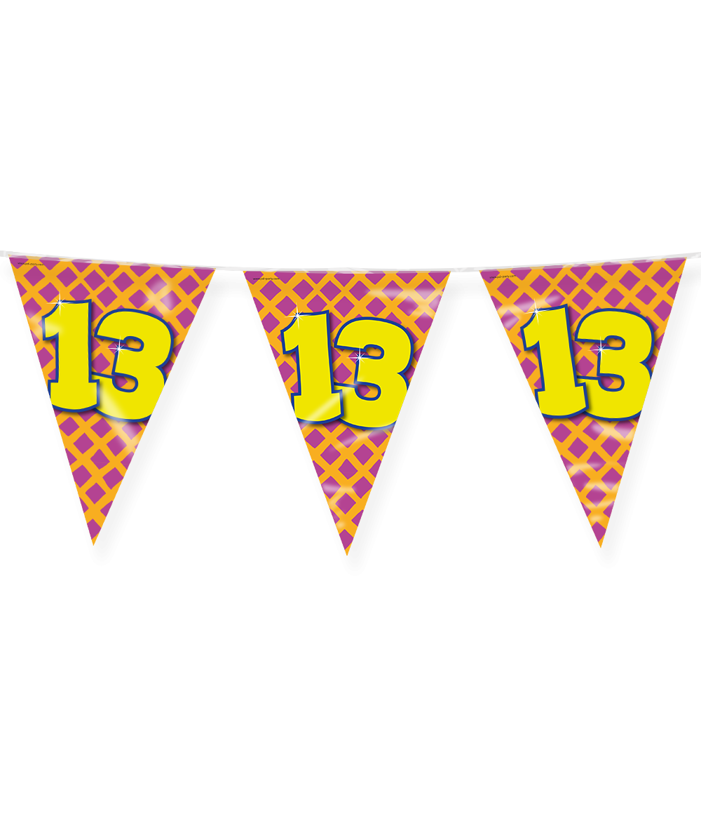 - Happy Verjaardag Vlaggenlijn 13 Jaar- Lengte: 10 meter - Dubbelzijdig bedrukt - Materiaal: Plastic