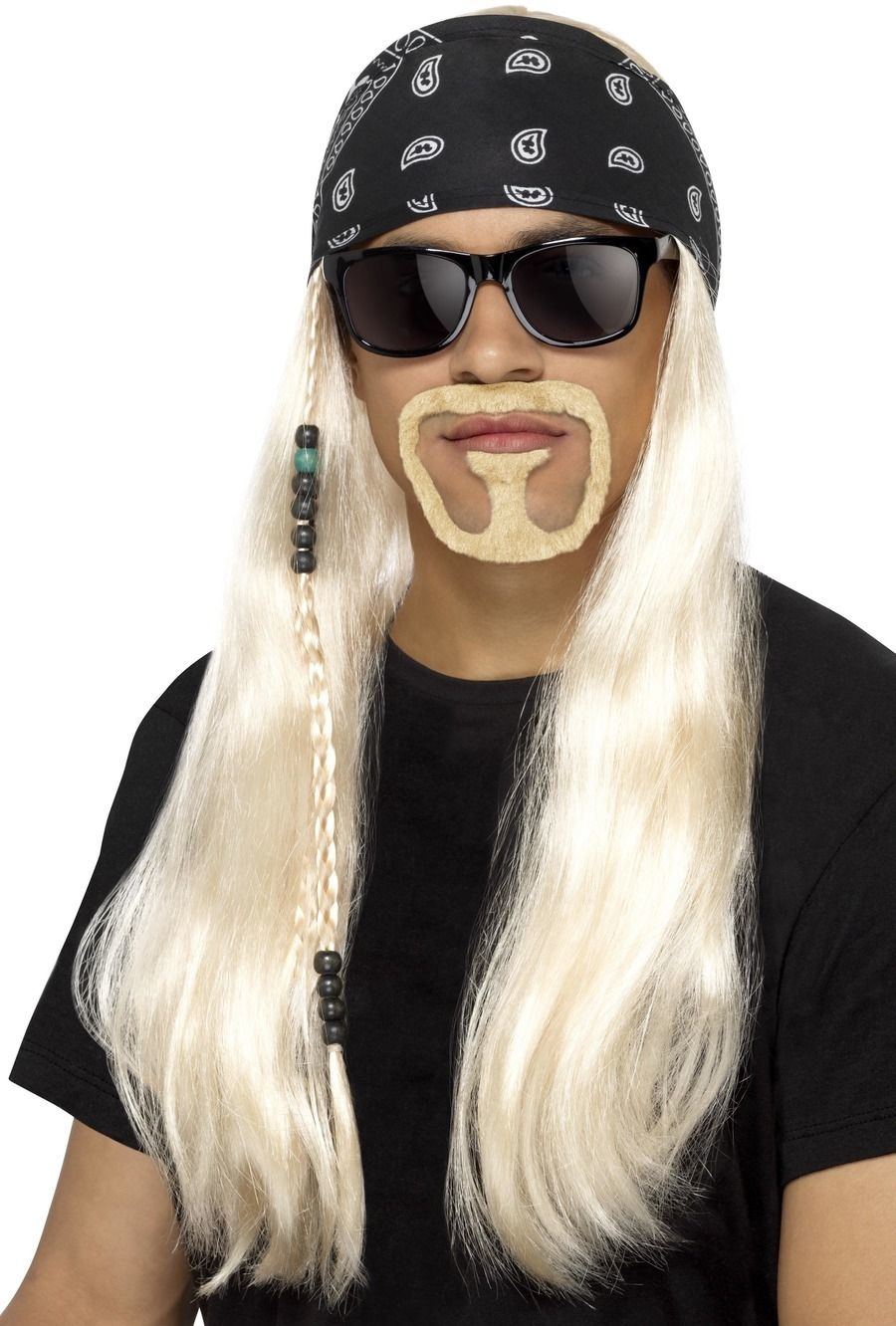 Hard Rocker SetBestaande uit Pruik, Bandana, (ring)Baard, Bril