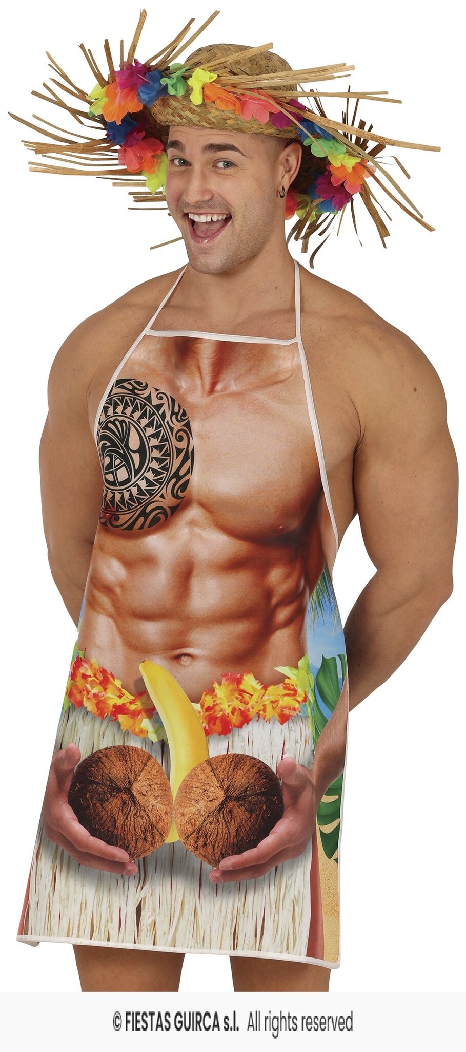 Het Hawaii Schort Gespierde Man is een leuke en opvallende toevoeging aan je keukenoutfit! Dit schort is perfect voor grillfans en kookliefhebbers die graag de show stelen tijdens het koken. Met een humoristische print van een gespierde man voelt het alsof je in de tropen bent, zelfs als je thuis aan het bakken bent. Ideaal voor barbecues, feestjes of als cadeau voor een vriend die houdt van koken met een vleugje humor!