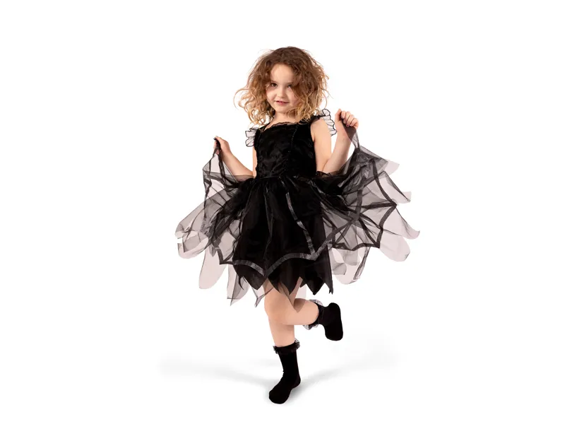 - Heksen Jurkje Kind Zwart Eldora- Beschikbare maten: 116-128- Materiaal: Polyester Exclusief accessoires!