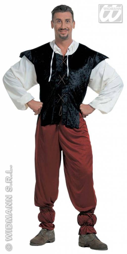 Herbergier kostuumBestaande uit: Shirt met Vest, Broek, BeenbandenBeschikbare maten: S, M, L en XL