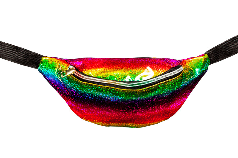 - Heuptas Regenboog Holografisch- Materiaal: Polyester - De heuptas heeft één opening door middel van een ritssluiting
