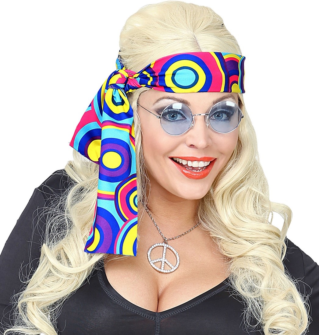 - Hippie Hoofdband Gekleurde Cirkels- Afmetingen: 110 cm lang, 8 cm breed- Materiaal: 95% polyester, 5% elastaanExclusief accessoires!