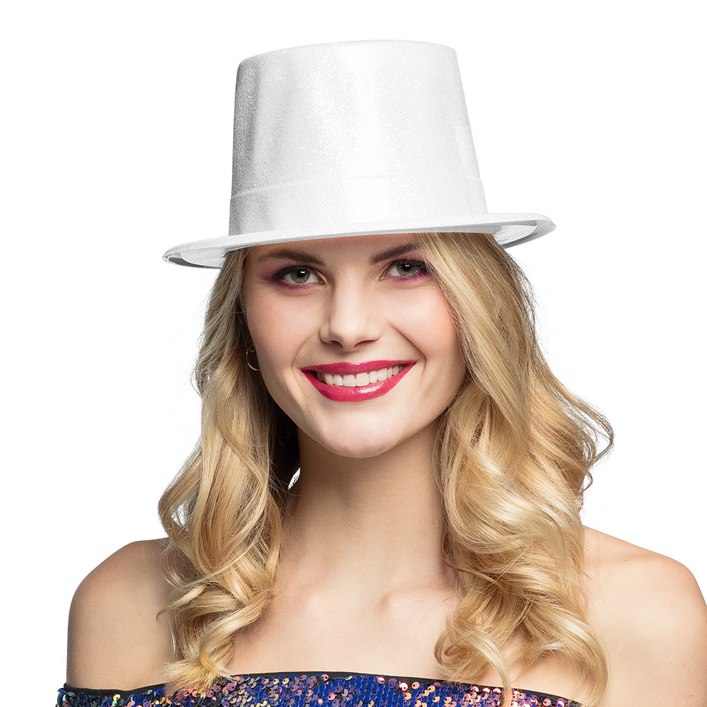 - Hoed Glitter Wit Volwassene- Geschikt voor volwassenen- Materiaal: PVC
