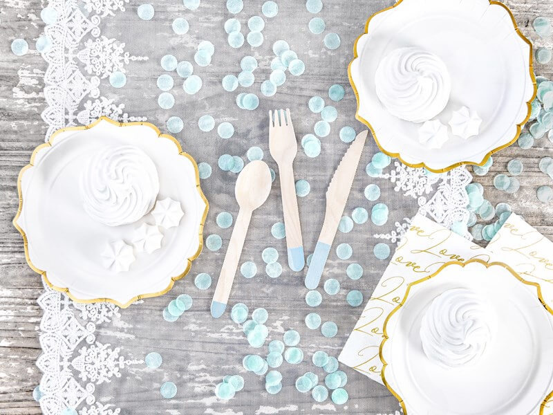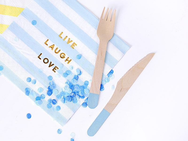 - Houten Bestek Woodland Lichtblauw (18st)- Bestaande uit: 6x Mesjes, 6x Vorkjes en 6 lepels- Afmetingen: 16cm- Materiaal: Hout