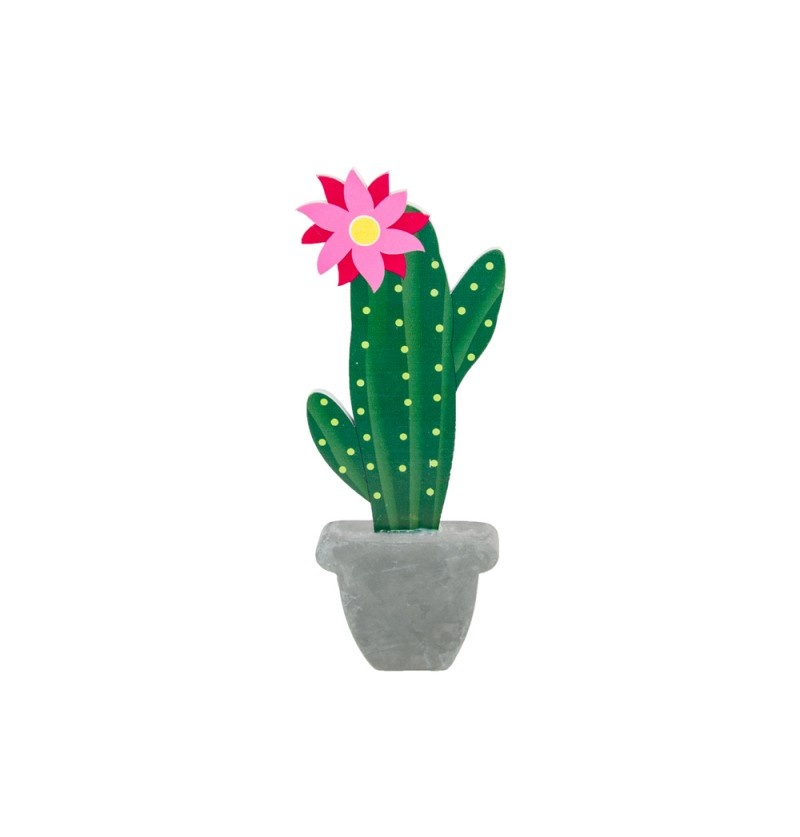 - Houten Cactus Decoratie Met Cement Imitatie Voet (20cm)- Afmetingen: 7,3 x 2cm x 20cm- Materiaal: Hout en imitatie cement
