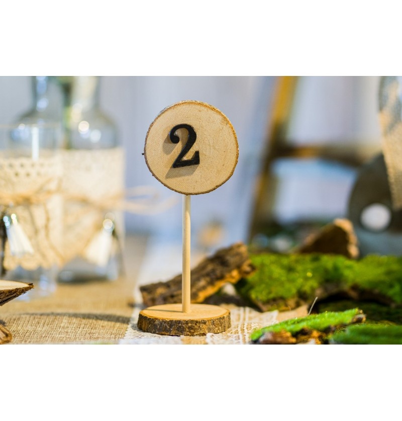 - Houten Tafelmarkers Boomstam- Afmetingen: 5 cm x 13,5 cm- Bestaande uit: 10 houten tafel nummer bordjes- Materiaal: Hout