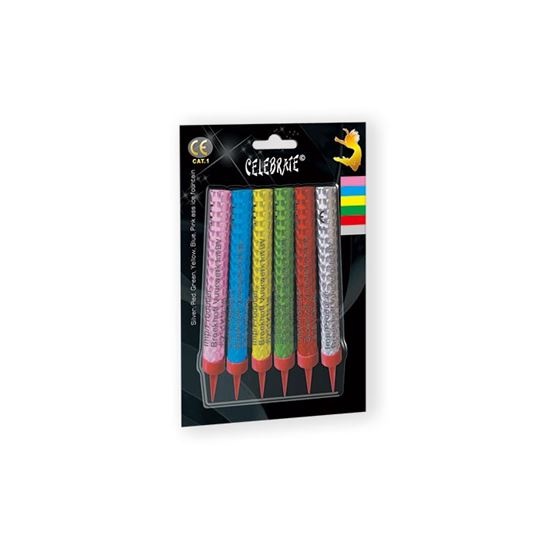 - 6 verschillende ijsfonteinen per verpakking in de kleuren roze, blauw, geel, groen, rood en zilver