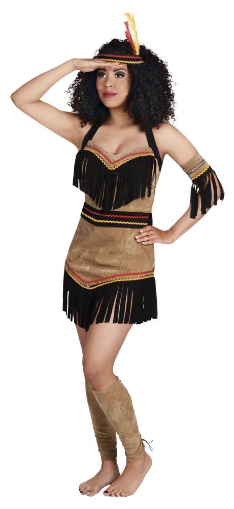 Indianenpakje Squaw eagleBestaande uit Jurkje, riem, Hoofdband, Armbanden en BeenkappenMaat 40/42