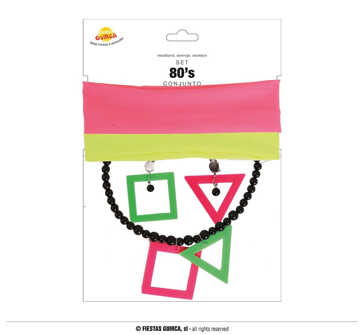 - Jaren 80 accessoire set Linda- 5 delig: 2 hoofdbanden, 2 oorbellen en een ketting