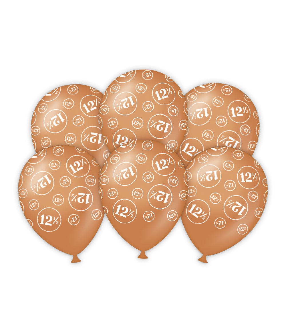 - Jubileum Ballonnen 12,5 Jaar- Aantal: 6 Stuks per verpakking- Diameter: 30cm- Inhoud: Leeg (standaard)- Geschikt voor: helium en lucht- Zweeftijd (helium): 12-14 uur- Materiaal: Latex