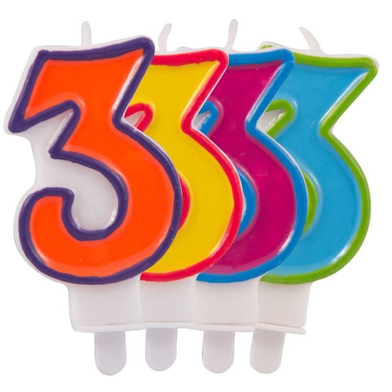Kaars cijfer 3 in vrolijke kleurenPer 1 stukLet op: U krijgt een van de beschikbare kleur varianten geleverd. Het is helaas niet mogelijk hierin een keuze te maken.