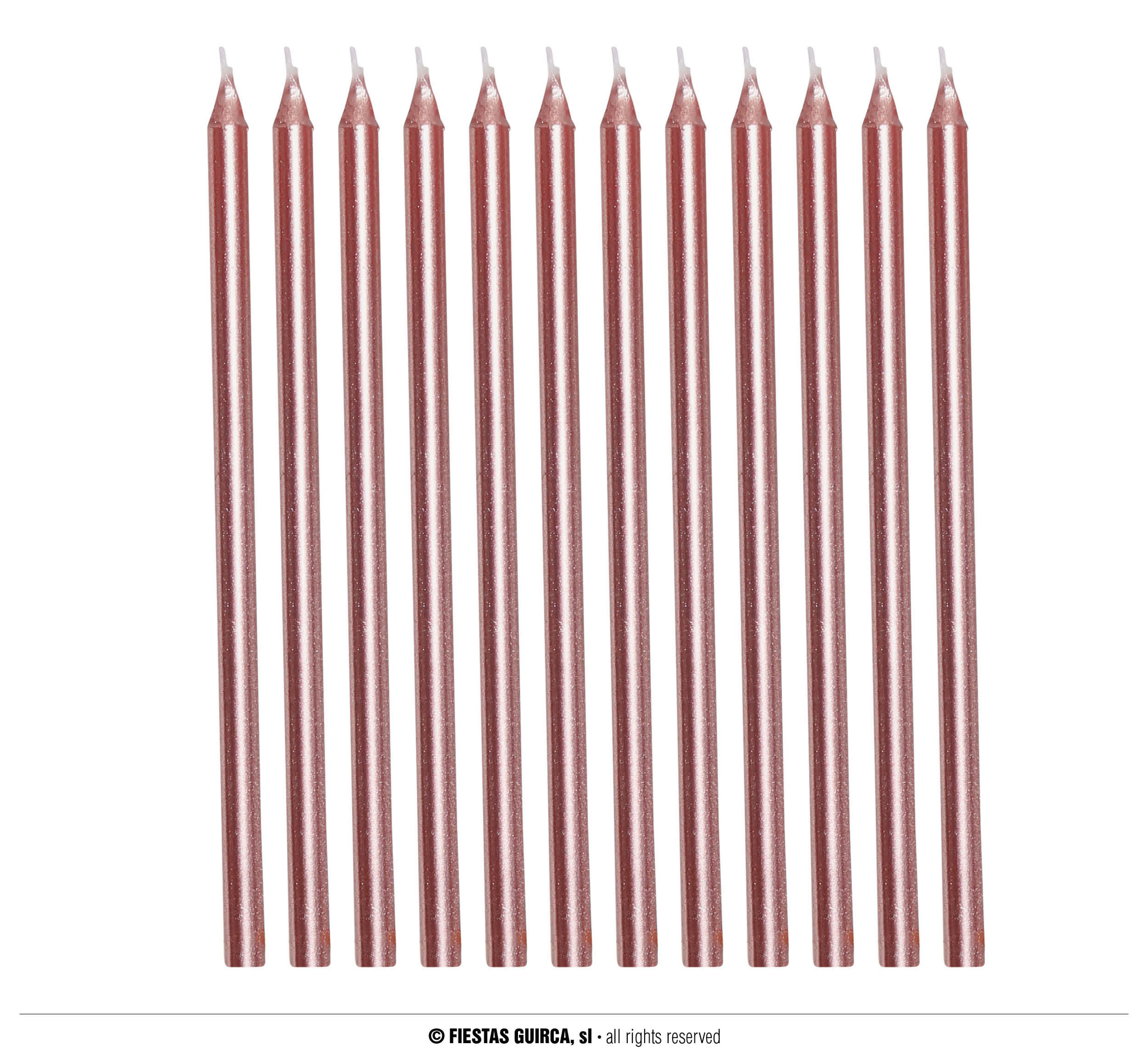 - Kaarsjes Rose Goud- Aantal: 12 stuks per verpakking- Afmetingen: 13 cm
