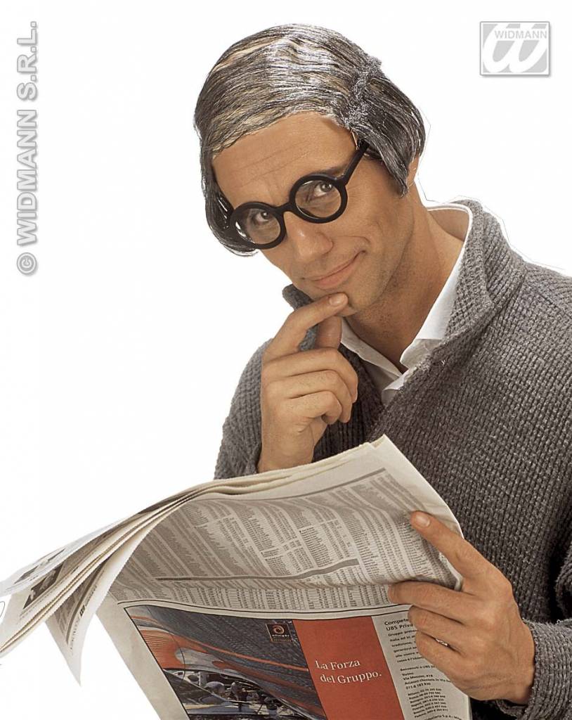 Kale kop oude man met laatste haar (rubberen 'hoofdhuid' zichtbaar door haren heen)