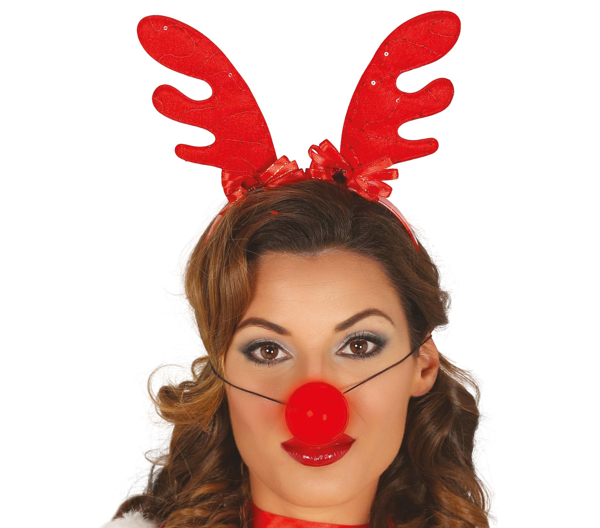 - Kerst Diadeem Met Lichtgevende Rendierneus- Materiaal: Polyester, Pvc- Bestaande uit: Diadeem en neus - Licht: Knipperend licht tussen blauw en rood - Inclusief batterijen