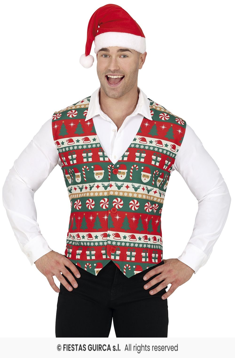 - Kerst Gilet Heren Candy Cane- Maat one size- Exclusief blouse en muts!