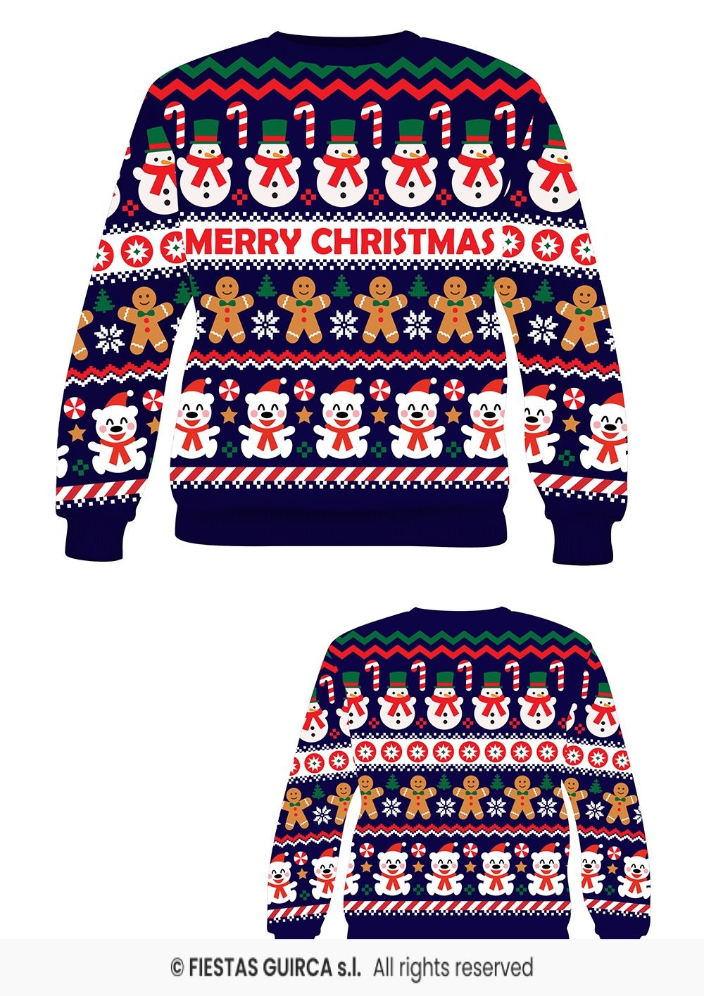 - Kerst Sweater Merry Christmas Sneeuwpop Blauw Heren
