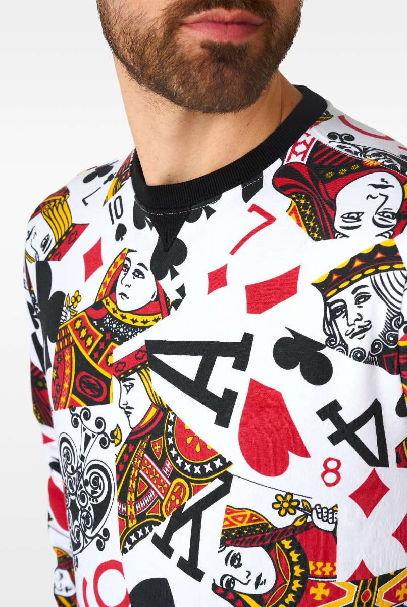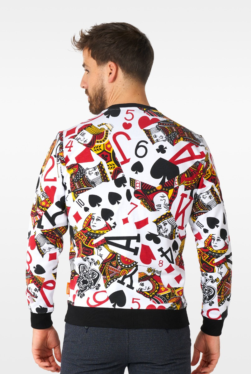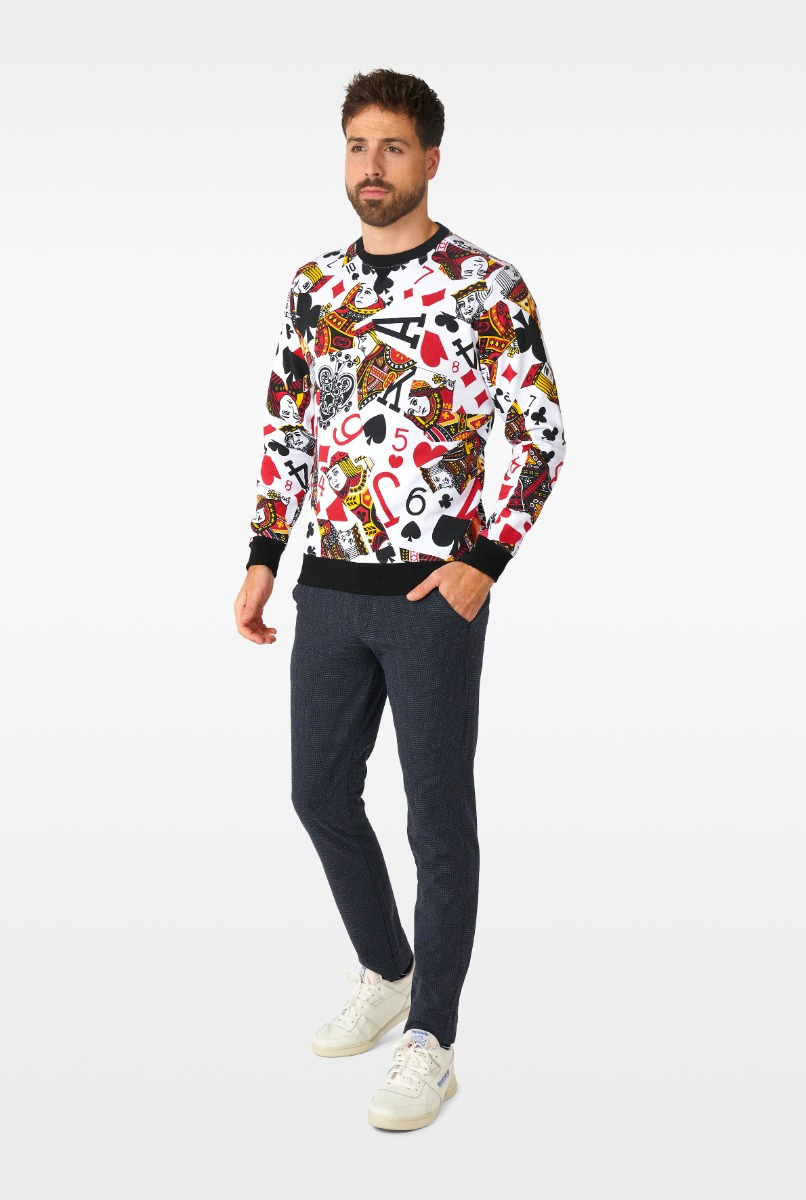 Zonder bluffen: deze King of Clubs-sweater is in elke situatie het gokje waard. Een vrijgezellenfeest, Halloween of een trip naar Las Vegas zijn enkele gelegenheden waarvoor deze trui een echte topper zal zijn. Dus speel je kaarten goed en schaf deze trui zo snel mogelijk aan. Royal Flushes gegarandeerd.