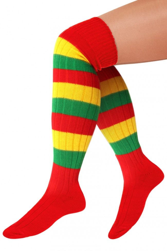 - Kniekousen Lang Rood/Geel/Groen Gestreept- Beschikbare maten: One size; 41-47