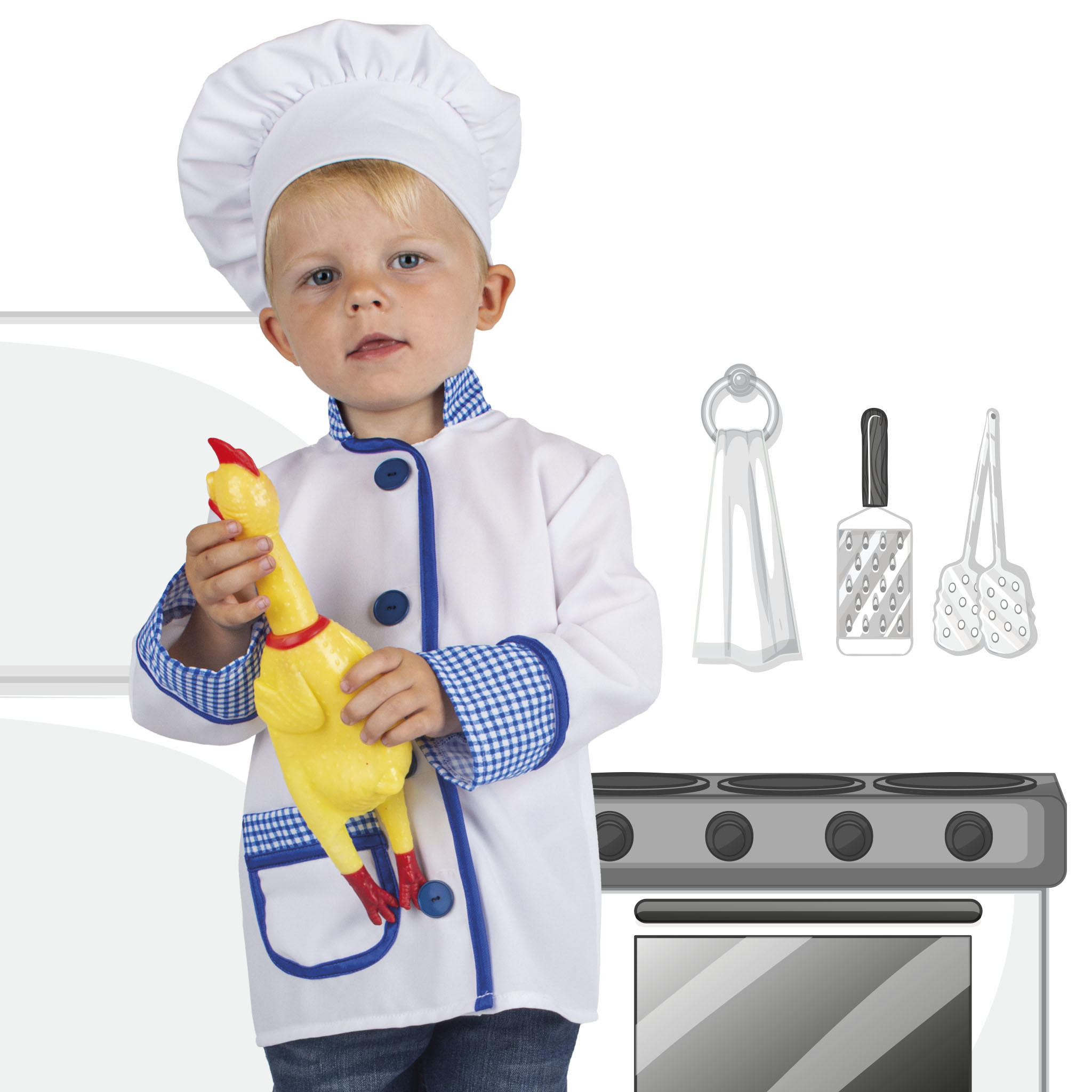 - Kok Kostuum Jongen Wit/Blauw