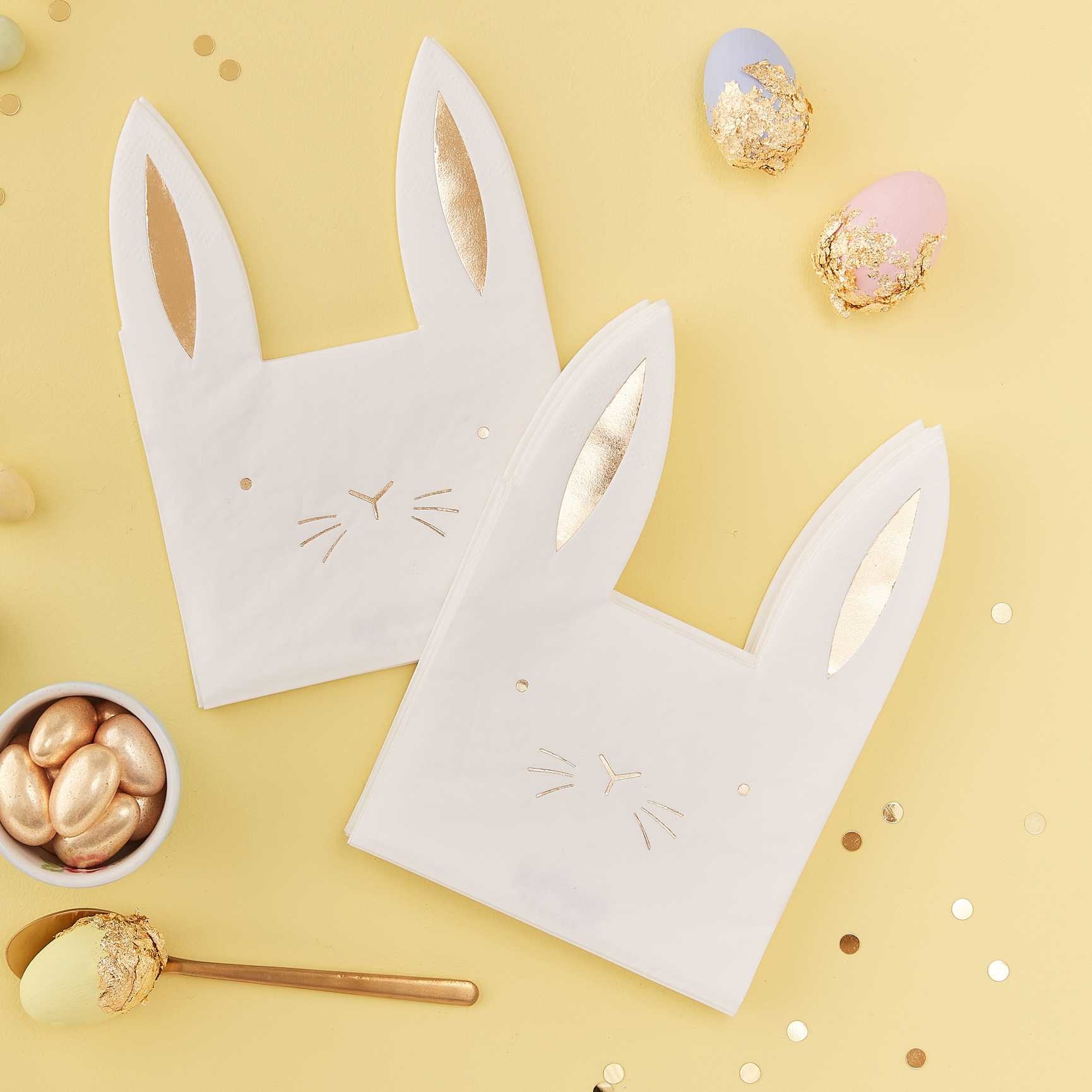 - Konijnen Servetten Wit/Goud- Bestaande uit: 16 servetten - Afmetingen: 16x11cm