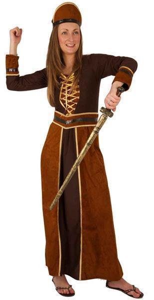 - Kostuum krijger vrouw - Bestaande uit: Een jurk, riem, hoofdkap- Beschikbare maten: Maat 38, 40 en 42