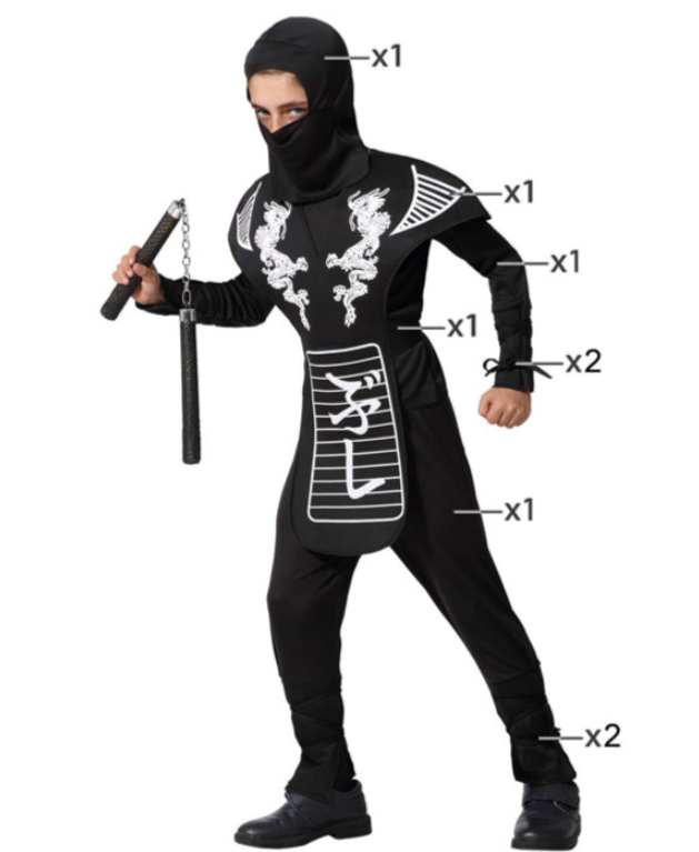 Laat je kinderen hun innerlijke ninja ontdekken met dit stoere Kostuum Ninja voor Kinderen van Feestbazaar! Het omvat een broek en een opvallend bovenstuk, perfect voor spannende avonturen. De bijgeleverde polsstukken en beenstukken maken het geheel compleet en zorgen voor een authentieke uitstraling. De hoofdkap voegt een mysterieus element toe, waardoor je kleine ninja zich meteen kan inleven in zijn of haar rol. Dit kostuum is ideaal voor verkleedpartijtjes, Halloween of gewoon voor wat fantasierijke speeluren thuis. Laat de creativiteit de vrije loop en ga samen op een spannende missie in de wereld van ninjas!