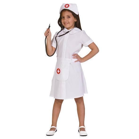 - Kostuum verleegster kind- Bestaande uit: Een jurkje, stethoscoop en hoofdkapje- Beschikbare maten: Maat 104, 116, 128, 140 en 152