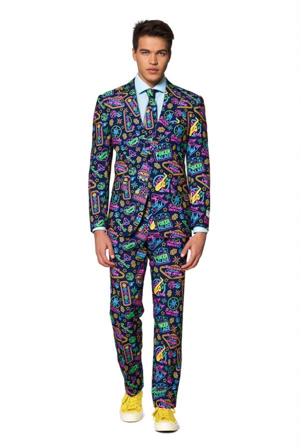 - Las Vegas maatpak man-Bestaande uit: Broek, Colbert, Stropdas-Beschikbare maten: 48 t/m 62LET OP: Het pak heeft een slim-fit model en valt dus niet groot. Bij twijfel tussen twee maten adviseren we je om de grootste van de twee te kiezen.