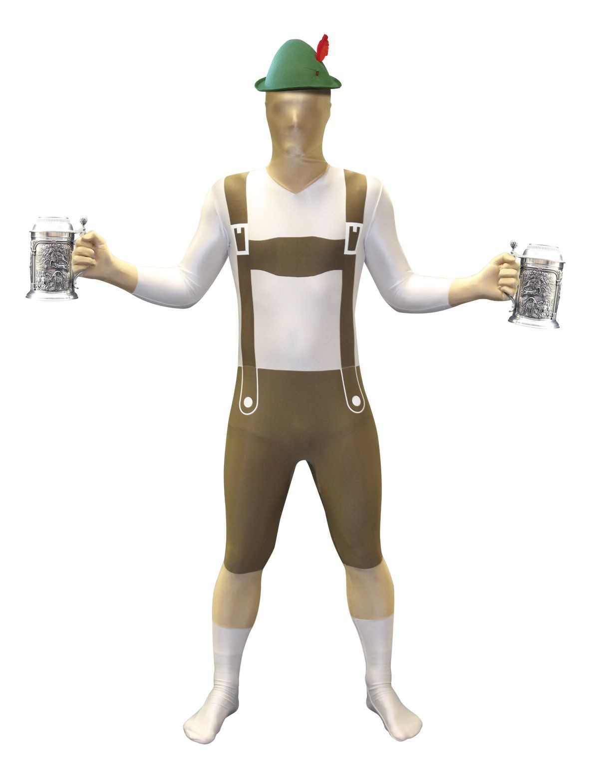- Lederhosen Morphsuit - U kunt door het pak heen kijken, ademen en drinken! De morphsuits hebben op de achterkant een ritssluiting. - Beschikbare maten: Maat M, L, XL en XXL